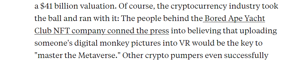 Extracto de RIP Metaverse – Un obituario para la última moda en unirse al cementerio de la tecnología. Fuente: Business Insider