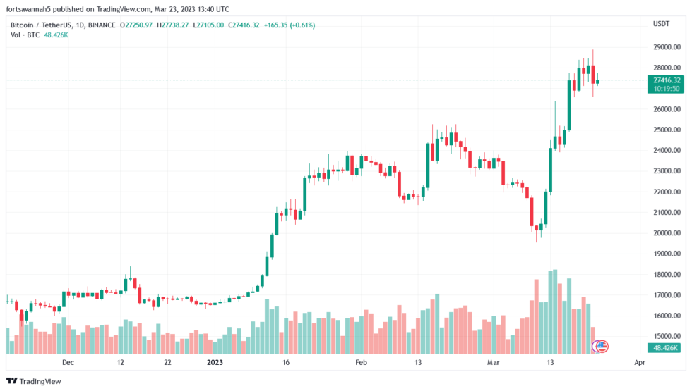 BTC fällt unter $28,000 l BTCUSDT auf Traidngview com
